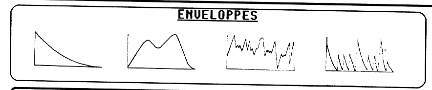 Touch "DRAW ", select an envelop in the ENV- bank. Draw the variation in the sound dynamic in relation to time: the farther your pencil goes from the horizontal line, the louder the sound. Instantly, the envelope is displayed on the control screen; if you aren't satisfied, just draw it again.