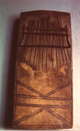 The kalimba is made from a board box or calabash: wooden or metal keys are attached to the top. The kalimba is a lamellaphone of Eastern Central and South West Africa.