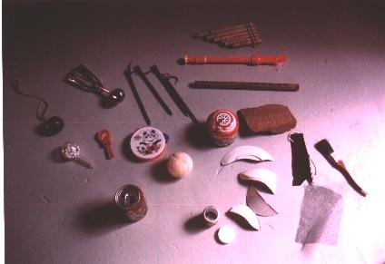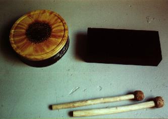6. STICKS: collect drum sticks of all sorts and hit your found sound objects softly. Experiment with "daily-life" sticks. On your own risk: tick on the boxes of all your sound-machines (synthesizers, hifi tools, drum boxes) and classical instruments, If these expensive instruments aren't yours, it's forbidden! You may try using your fingertips only.
