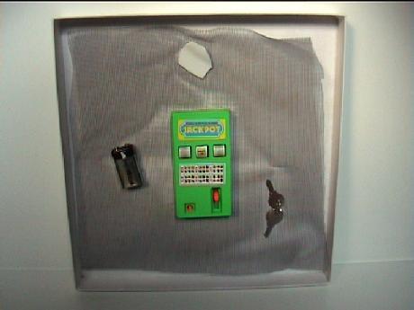The little white potsherd is the result of the artificial power (= a battery) of the jackpot player who is thinking about the key of the worldnet of meshes.