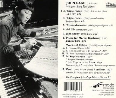 The Works for Piano 4: John Cage Edition Mode 25. > http://www.mode.com/catalog/106cage.html