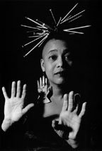 Pamela Z is a San Francisco-based composer/performer and audio artist who works primarily with voice, live electronic processing, and sampling technology. In performance, she creates layered works combining operatic bel canto and experimental extended vocal techniques with a battery of digital delays, found percussion objects, and sampled sounds triggered with a MIDI controller called The BodySynth which translates data from electrode sensors worn against skin to generate MIDI. The BodySynth (designed by Ed SEVERINGHAUS ) allows her to manipulate sound with physical gestures. Pamela Z's voice ranges from the guttural depths to operatic soaring. Her work combines opposites of high and low tech into a result that both spiritually and organically is.